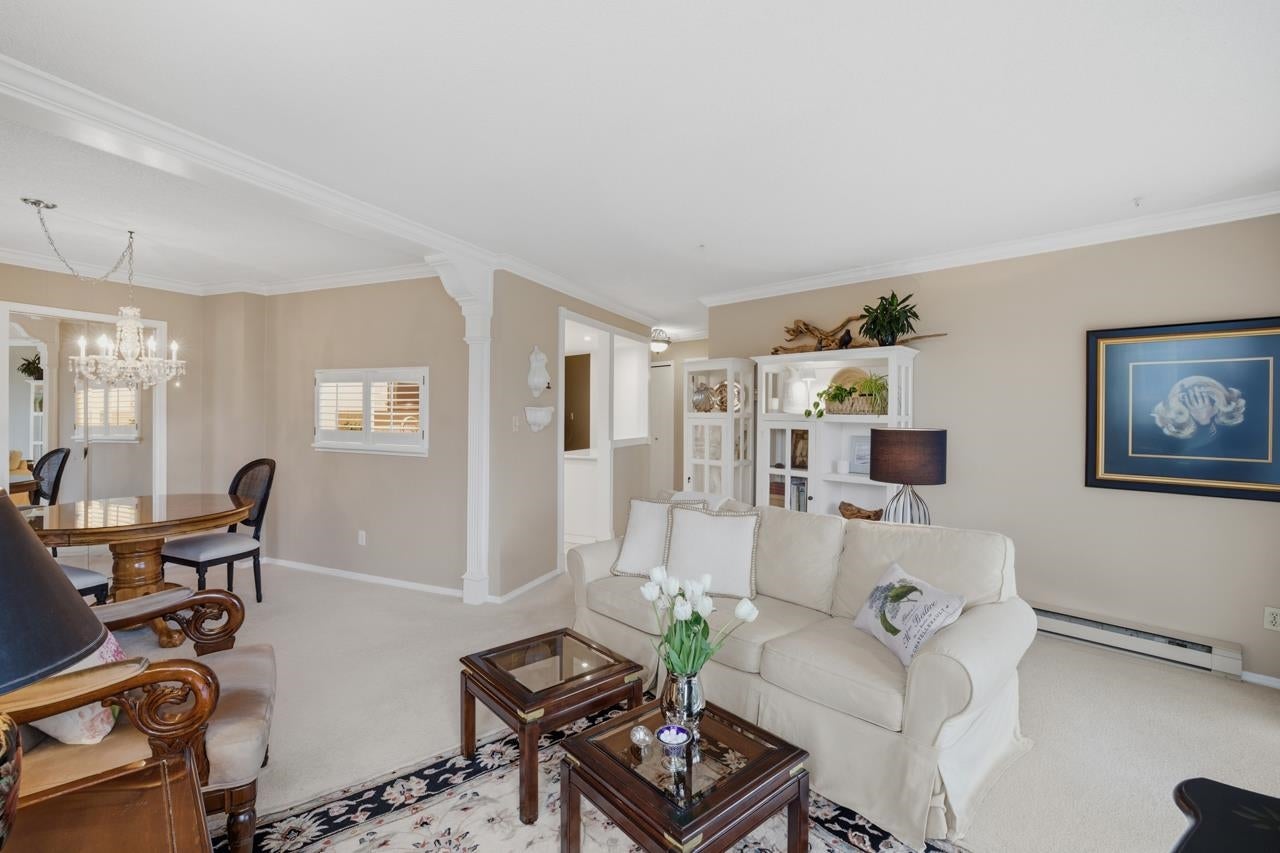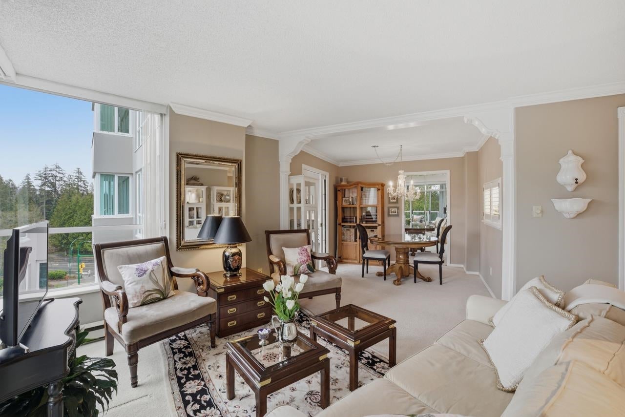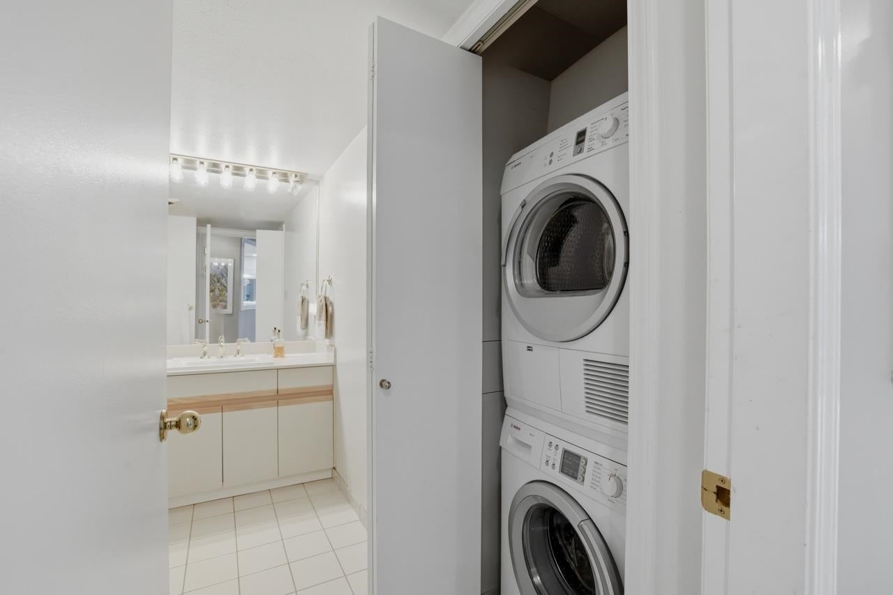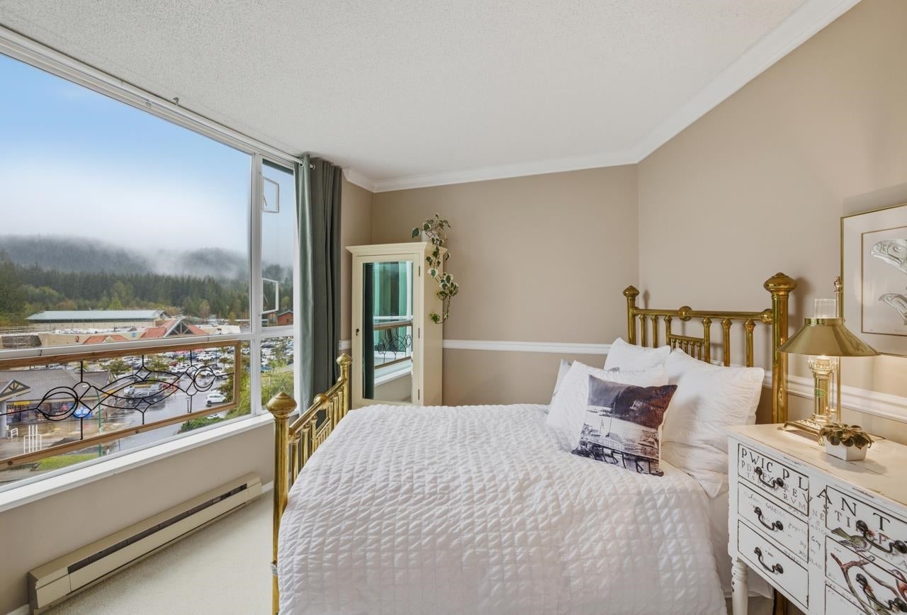 This elegant 2-bed, 2-bath home sits in a solid concrete building and comes with a big, breezy deck looking out to the evergreen slopes of Mt. Seymour. The space feels thoughtfully put together, with the kitchen at the centre, in-suite laundry, and a bonus space for storage or a cozy den. The building offers a gym, hot tub, common room, garden plots, large grounds, shared EV charging, and friendly neighbours with a proactive strata. The building was recently painted and has had the deck and parking membranes replaced. Includes 1 parking. Wheelchair accessible. Sorry, no pets. Steps to Parkgate Village, hiking trails, the local community centre and library, Seymour Golf Club and Northlands Golf. Open House: Sunday, April 26, 2-4pm.